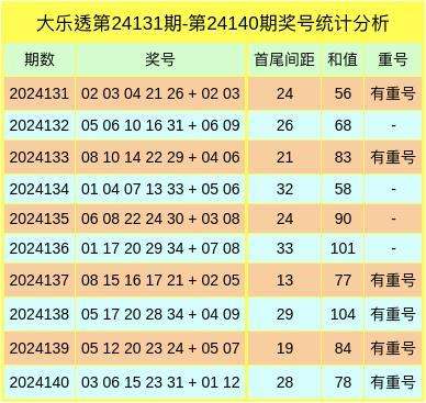 141期白琪峰大乐透预测奖号:首尾间距分析