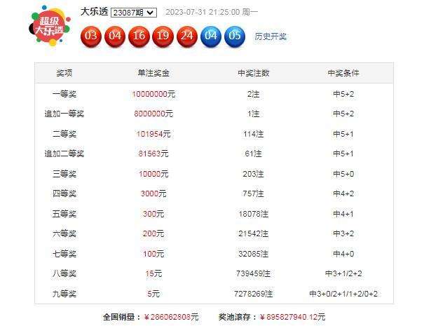 大乐透第23087期开奖。当期开奖号码为:前区03 04 16 19 24,后区04 05。当期前区号码大小比为2:3,奇偶比为2:3,三区比2:3:0,前区开出1枚重号03,开出1组连号03 04;后区开出小小组合04 05。