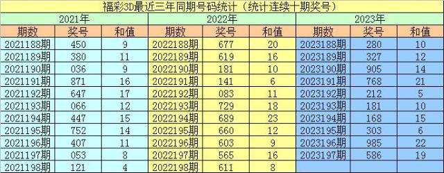 2022196期开奖号码:603;2023196期开奖号码:985