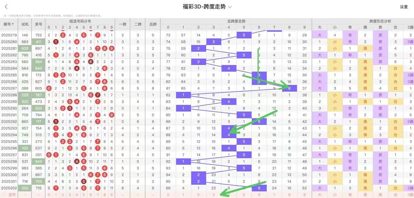 2025303期福彩3D跨度走势图如下:
