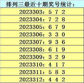 上期回顾:排列三第2023312期开奖号码为442,历史上组选出现26次,直选出现9次。