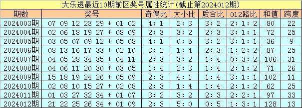体彩大乐透第2024013期定位奖号属性分析:
