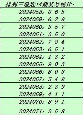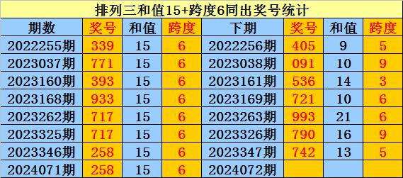 上期回顾:排列三第2024071期奖号:258。和值15,跨度6。