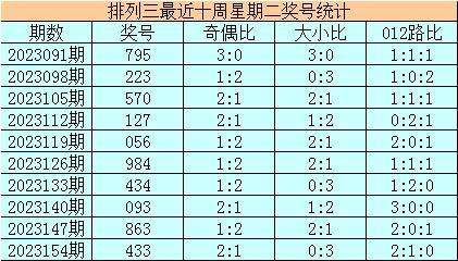开奖回顾:排列三第2023160期奖号为:393,其奇偶比为3:0,大小比为1:2,奖号012路比为3:0:0。
