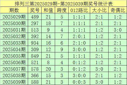 开奖回顾:排列三第2025039期奖号开出:588,组选类型:组三,大小比为3:0,奇偶比为1:2,和值为21,跨度为3。