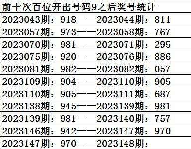 二、百位分析:上期开出号码9,前10次号码9出现之后下期分别开出号码:8728096979,其中号码大小比为8:2,大号表现活跃;奇偶比为5:5,相等;012路比为5:2:3,0路号码表现活跃。本期参考号码:6。