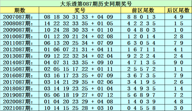 李太阳大乐透第2022087期历史同期前区尾数看号