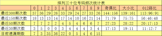 百位号码:前50期走势活跃的号码为:0、3、4、5开出7个;走势最冷的号码为:1开出2个,6、9开出3个。奖号012路比开出20:15:15,奇偶比开出25:25。本期百位杀排除:5、6,注意号码2、3、4,胆码参考2。