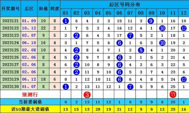 上期后区中奖号码为01 07,近10期后区综合奇偶比5:15,奇偶数出号偶数占优,本期推荐奇奇组合03 11: