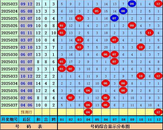 后区分析:上期后区开出全偶、1路+0路组合04、06,最近10期后区奖号奇偶比为7:13,偶数号码走势活跃,后区奖号012路比为7:9:4,本期预计出现在02、03、04、07、12之中,两码单挑04、12。
