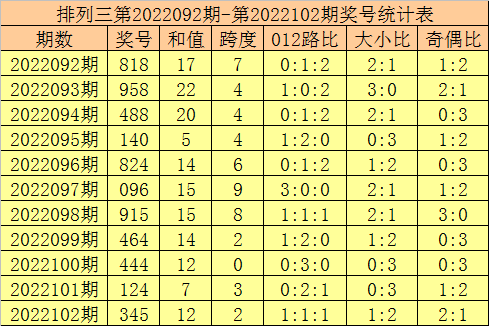 一、在以上统计中,表现最热的四个奖号为:4、6、0、2,一般来说这四码中包含当期开奖号码,本期看好号码2出现;走势最冷的三个奖号为:7、1、3,在实际开奖中当期奖号不会全部出现在这三码中,本期可以排除号码7。
