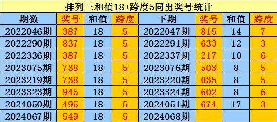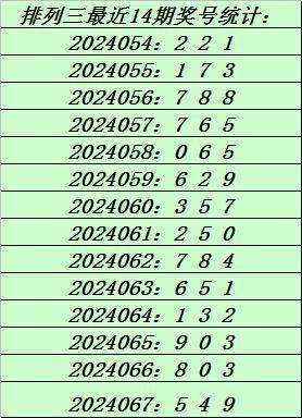 上期回顾:排列三第2024067期奖号:549。和值18,跨度5。