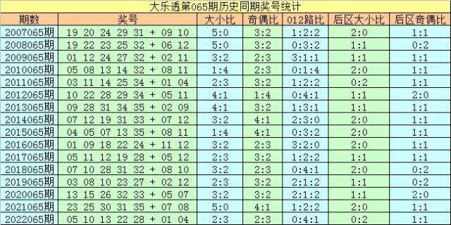 大乐透第2023065期历史同期奖号分析: