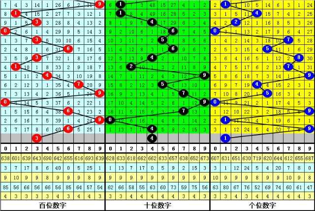 跨度分析:最近5期分别开出跨度:4、9、3、9、5,本期注意跨度走小,参考跨度3。