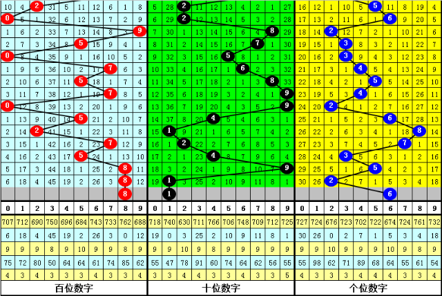 跨度分析:3D上期跨度为7,跨度近期比较分散,本期看好跨度出现在5-9之间,最大跨度参考6789,参考跨度7。