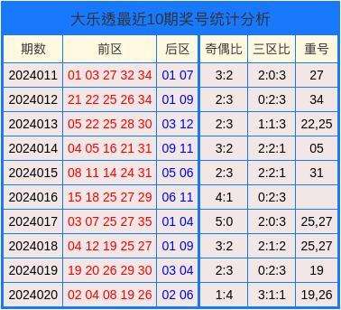 开奖回顾:大乐透第2024020期奖号:02、04、08、19、26+02、06。其中奇偶比为1:4,三区比为3:1:1,开出2枚重号19,26。
