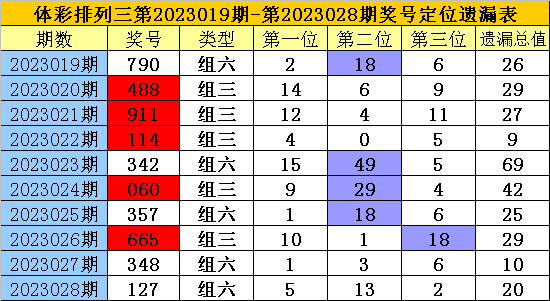 开奖回顾:排列三第2023028期奖号为:127,各位号码遗漏值分别为5、13、2,遗漏总值为20。