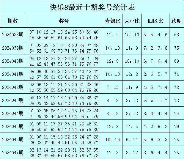 快乐8第2024048期奖号奇偶、大小分析