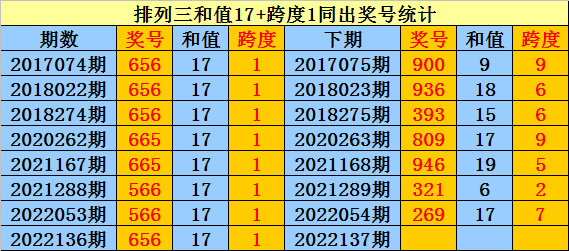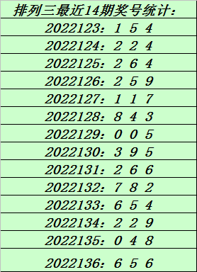 上期回顾:排列三第2022136期奖号:656。和值17,跨度1。