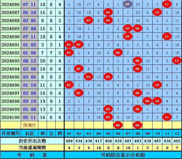 后区分析:上期后区开出第二区和三区号码05+11,最近10期后区三区落号比为2:0:0,最近5期后区三区落号比为1:0:1,本期后区号码大范围关注02、05、06、07、08,后区精选两码06、08。