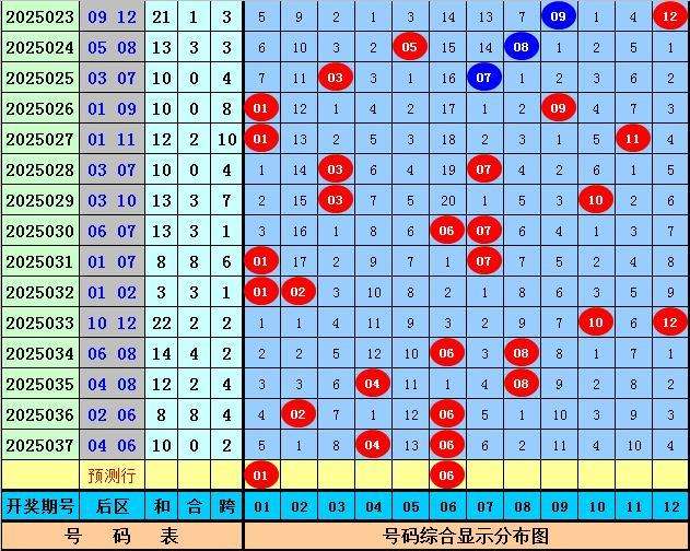 后区分析:上期后区开出号码04和06,历史上后区04和06组合开出了33次,前5次04和06组合出现之后,其下期后区分别开出:06 12、07 09、04 12、03 12、05 06,本期后区注意号码01、03、06、10、12,后区杀五码02、05、07、09、11。