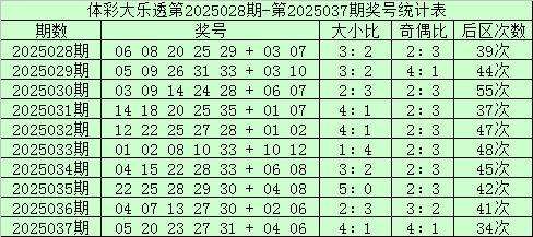 前2次前区第三四五位尾数组合开出:3-7-1之后,其下期号码奇偶比为13:2,大小比为7:17第2025038期前区胆码参考:31、32,前区必杀四码:05、13、23、24。