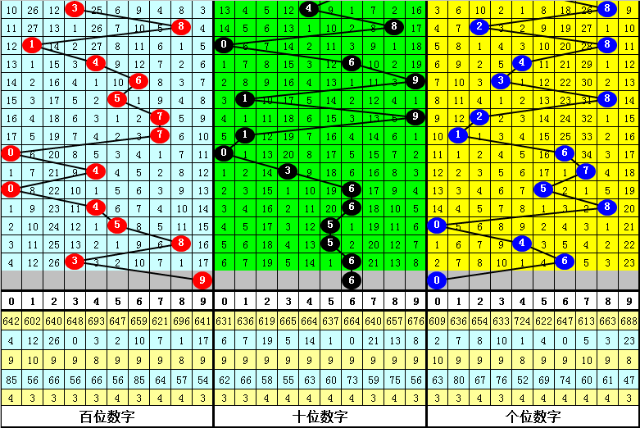 百位:大小比为2:4,奇偶比为1:5,本期参考号码9。