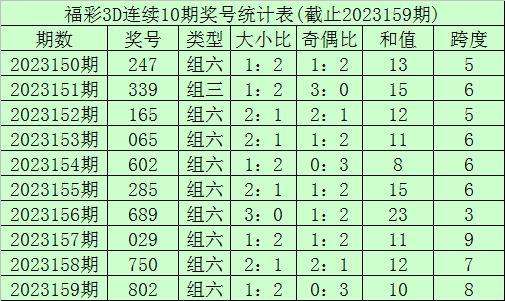 开奖回顾:福利彩票3D第23159期奖号开出802。奖号类型为组六,奇偶形态为偶偶偶,大小形态为大小小。