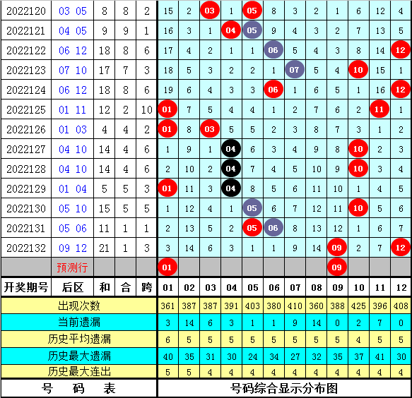 石浩第2022133期大乐透后区分析:后区上周星期一后区奖号为05和10,上期开出奖号09和12,最近9周星期一与最近9期后区奖号奇偶比分别为6:12和8:10,大小比分别为8:10和7:11,本期预计后区开出全奇组合,参考号码01、03、05、09。