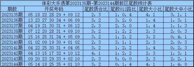 三少第2023145期体彩大乐透前区尾数分析: