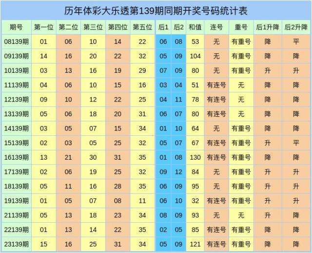 和值分析:在历史同期开奖中,前区和值出现范围在32-130之间,区间内的最大波动差值为98,其中小数和值开出频次较高,共出现了10次,当前小数和值开出了10年,今年同期预计和值继续走小。