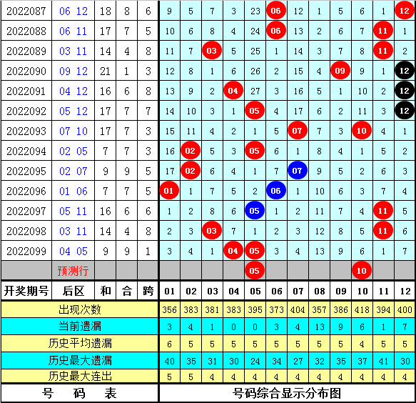 后区五码参考:03 05 06 10 12