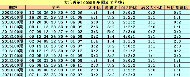 小王子大乐透第2022100期历史同期奖号属性分析: