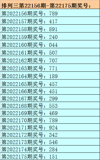 1。排列三最近十期分别开出号码:451-299-553-469-789-924-342-546-284-151,其中有6期奖号开出了上期的重复号码,本期预计第2022175期奖号:151中有重号,参考号码:5。