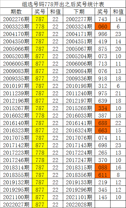 福彩3D第2022027期开出组选号码:778,该号码历史上组选出现了26次,其下期分别开出了号码:743、060、986、419、875、073、713、076、918、312、975、639、334、387、688、663、074、698、265、370、088、611、219、345、145,如图: