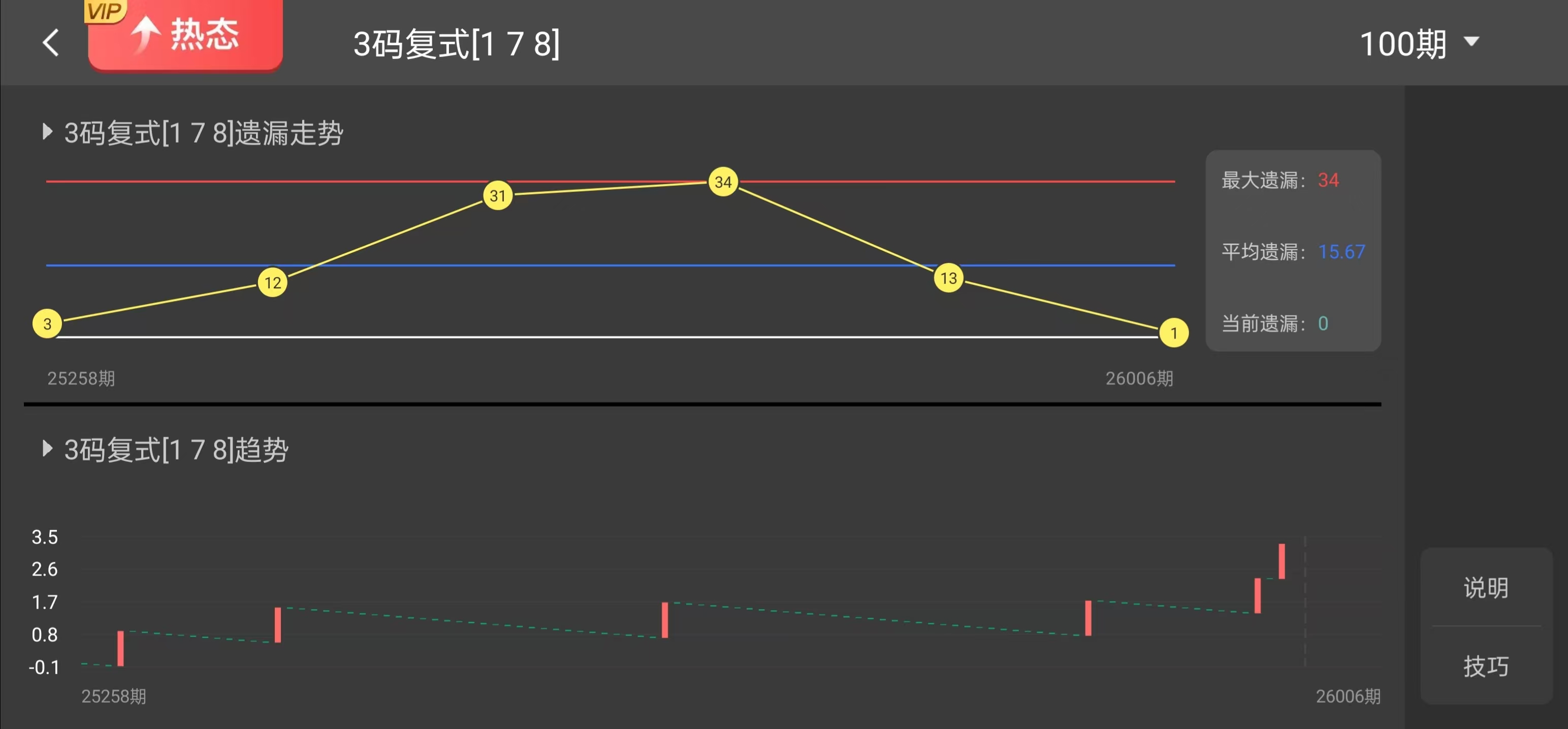 百位数字中,数字1、4、7的出现频率明显偏低。历史数据分析表明,数字1出现约43次,数字4约47次,数字7约45次,而其他数字如0、2、6、8、9均超过50次。近期数据中,数字1已遗漏20期,数字4遗漏18期,数字7遗漏16期,均处于冷态。百位熱号主要集中在3、5、8、9。因此,杀掉百位的1、4、7是基于遗漏值和频率的双重考量,有助于优化选号策略。