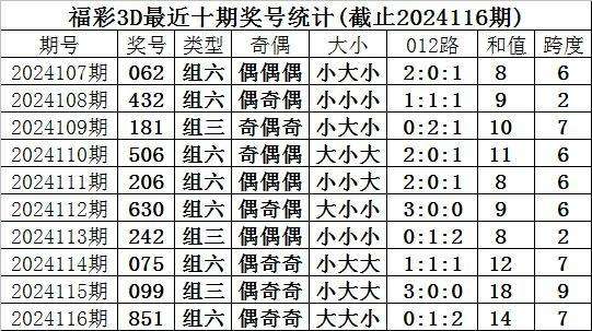 开奖回顾:福彩3D第2024116期奖号为851,奖号形态为:组六、大大小、0:1:2、偶奇奇。