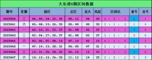 上期区间比为2:2:1,上期1、2区势头热,3区比较冷,本期推荐区间比关注1:2:2。
