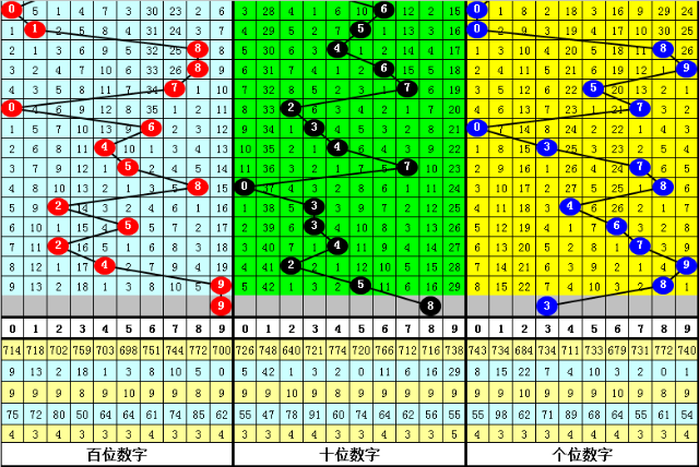 个位上期奖号为8,下降1个点位,本期注意再次下降,参考3。