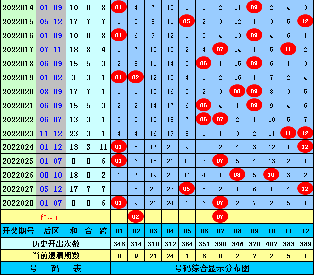 后区第二位推荐:在连续5期开奖中分别出号:12、07、10、12、07,均值为9。6,其中奇数奖号表现较冷,本期适当关注回补,参考奇数号码07。