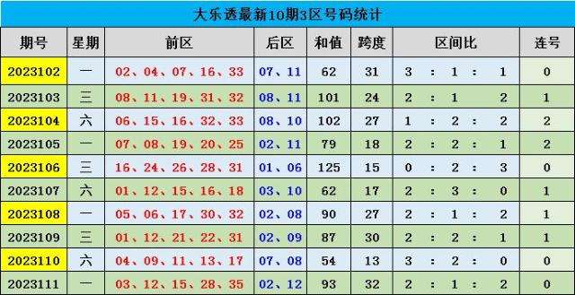 后区开出号码02、12落在1、3区。最近50期,一区(1-4)开出号码27个,二区(5-8)开出号码37个,三区(9-12)开出号码36个,2、3区号码较热,1区较温,本期推荐关注:02、07