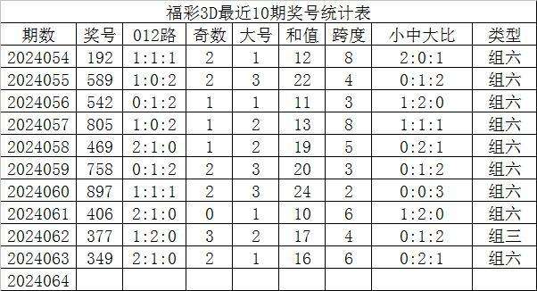 064期发哥福彩3D预测奖号:通杀号码推荐