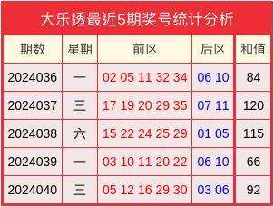 开奖回顾:大乐透2024040开奖号码为05、12、16、29、30+03、06。其中大小比为2:3,和值为92。