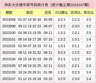 前区012路分析:上期前区012路比为3:2:0。在最近10期中,0路号码开出13次,1路开出23次,2路开出14次,其中1路号码出号率最高。本期关注0路、1路下号,推荐012路比为2:2:1。