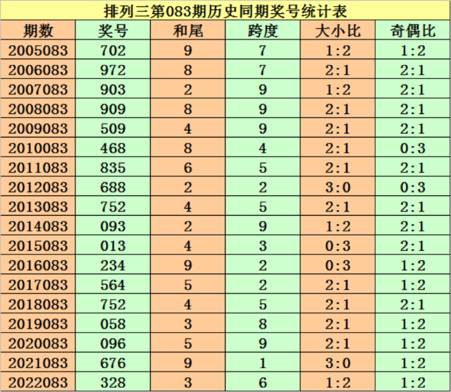 上期回顾:排列三第2022083期奖号开出328。