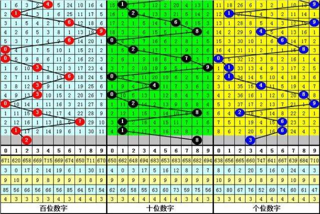 3、在以上0-9号码频次中,号码012路比为25:20:25,奇偶比为31:39,本期预计百位开出偶数号码,参考号码2。