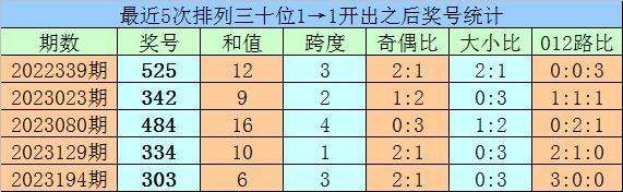 1、最近两期排列三十位号码开出号码分别为1和1,历史上十位号码连续两期同时出现号码1和1的奖号共开出67期。最近五次下期开出号码为:525、342、484、334、303;
