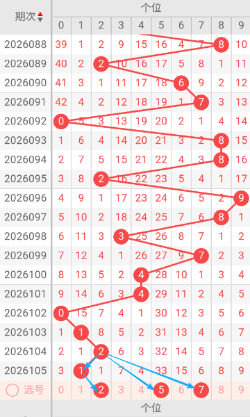 现在我给大家分析下,本期个位可能开出的号码,上期开出了1,093期开出了8号码球,094期开出了8号码球,095期开出了2号码球,096期开出了9号码球,097期开出了8号码球,098期开出了3号码球,099期开出了7号码球,100期开出了4号码球,101期开出了4号码球,102期开出了0号码球,103期开出了1号码球,104期开出了2号码球,105期开出了1号码球,跟据这几期的走势和历史30期内的走势对比,可以先考虑本期可能会出大号,下面我给大家推存个位可能开出的几个号,个人比较看好257,个位我们就先暂定这两个号。本期重点关2-7之间的号码,同时关注遗漏期数较大的号码。按最近遗漏走势,开了遗漏期数较大之后开遗漏期数小的可能性比较大。
