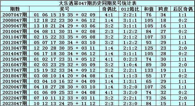 水镜体彩大乐透第2024047期历史同期奖号分析: