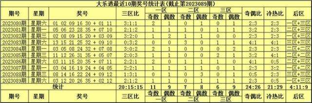 综上所述,大乐透第2023090期前区三区比看好2:1:2。